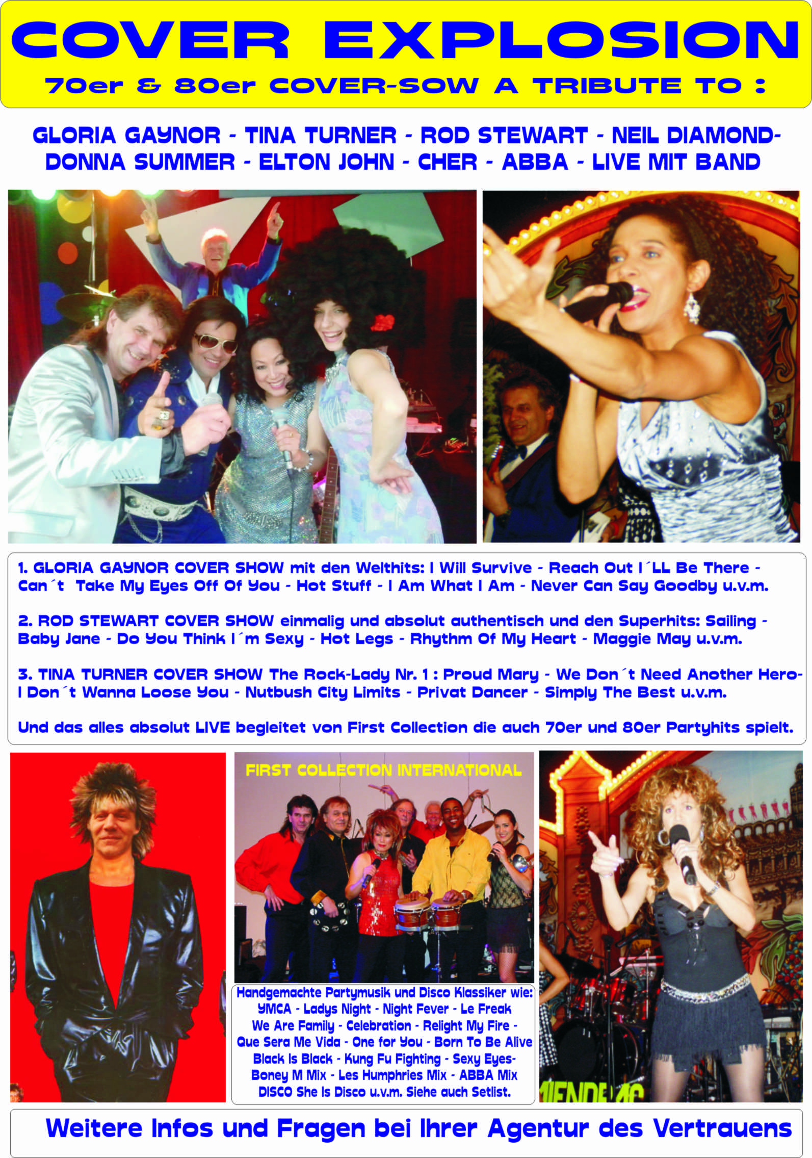 COVER-EXPLOSION BY VILLAGE FAMILY MIT DEN CLASSIC DISCO HITS DER 70er - 80er & 90er Jahre, autehtischen und alles absolut LIVE. Siehe Info.
